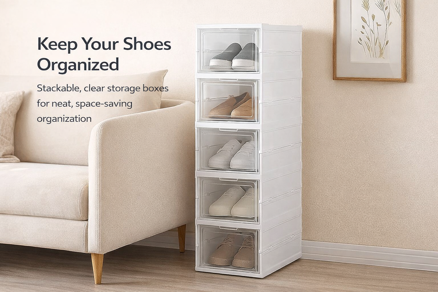 6 Tier Shoe Rack Collapsible Shoe Organiser with Door Foldable Sneaker Crates Footwear Storage for Men Women Heels Boots Loafers Sneakers Slippers