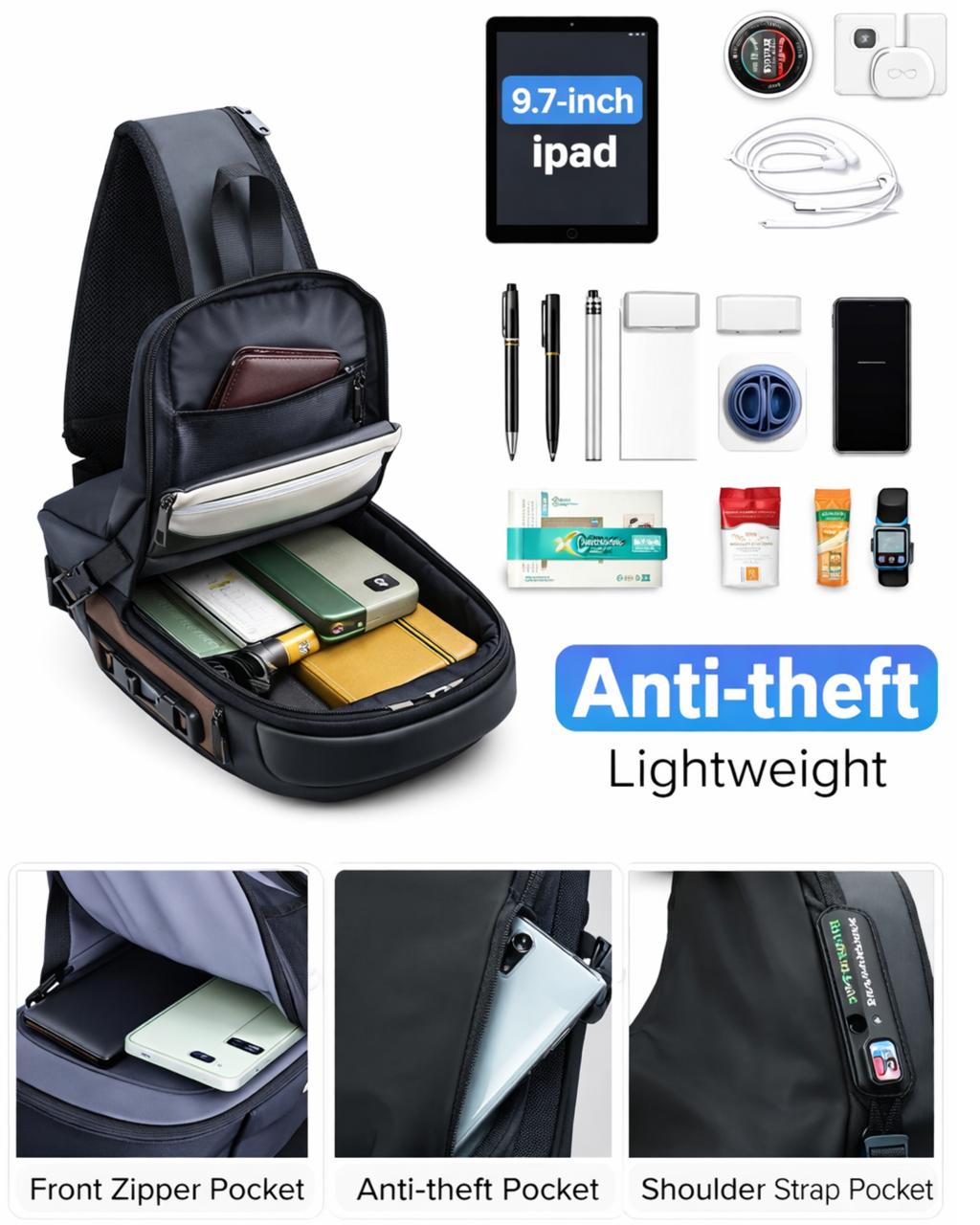 This Anti-Theft Smart Sling Bag is designed for modern life — whether you’re commuting, traveling, or heading out for the day. Built with a secure combination lock system, hidden pockets, and durable materials, it keeps your essentials protected from theft while offering easy access when you need them.